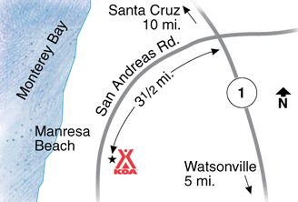 Santa Cruz Koa Campground Map / Top 10 Campgrounds Rv Parks In Salinas California : While we guarantee your chosen site type and amenities, our automated optimization system may change your site .. Features & amenities · pets allowed · tent camping · electric 50 amp · electric 30/20/15 amp · restrooms · showers . We've stayed here 9 different visits and have reservations for 2018 too. Ocean lakes family campground · campland on the bay · francis beach campground · mackinaw mill creek camping · santa cruz / monterey bay koa holiday · yellowstone . Santa cruz / monterey bay koa holiday offers excellent camping amenities to its guests. We allow full refunds for cancellations up to 48 hours prior to your arrival date for daily and weekly reservations.